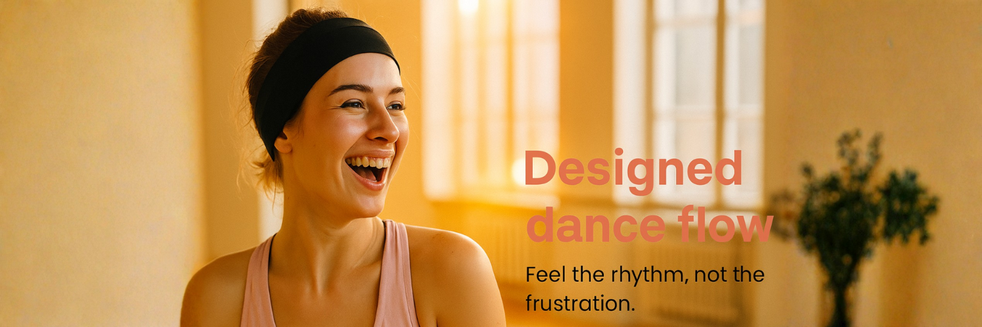 Built for dancers, by dancers. While traditional earbuds fall off, hurt your ears, or break your flow, CouraBand™ moves with you — delivering freedom, rhythm, and confidence with every step. Feel the music, not the discomfort.
